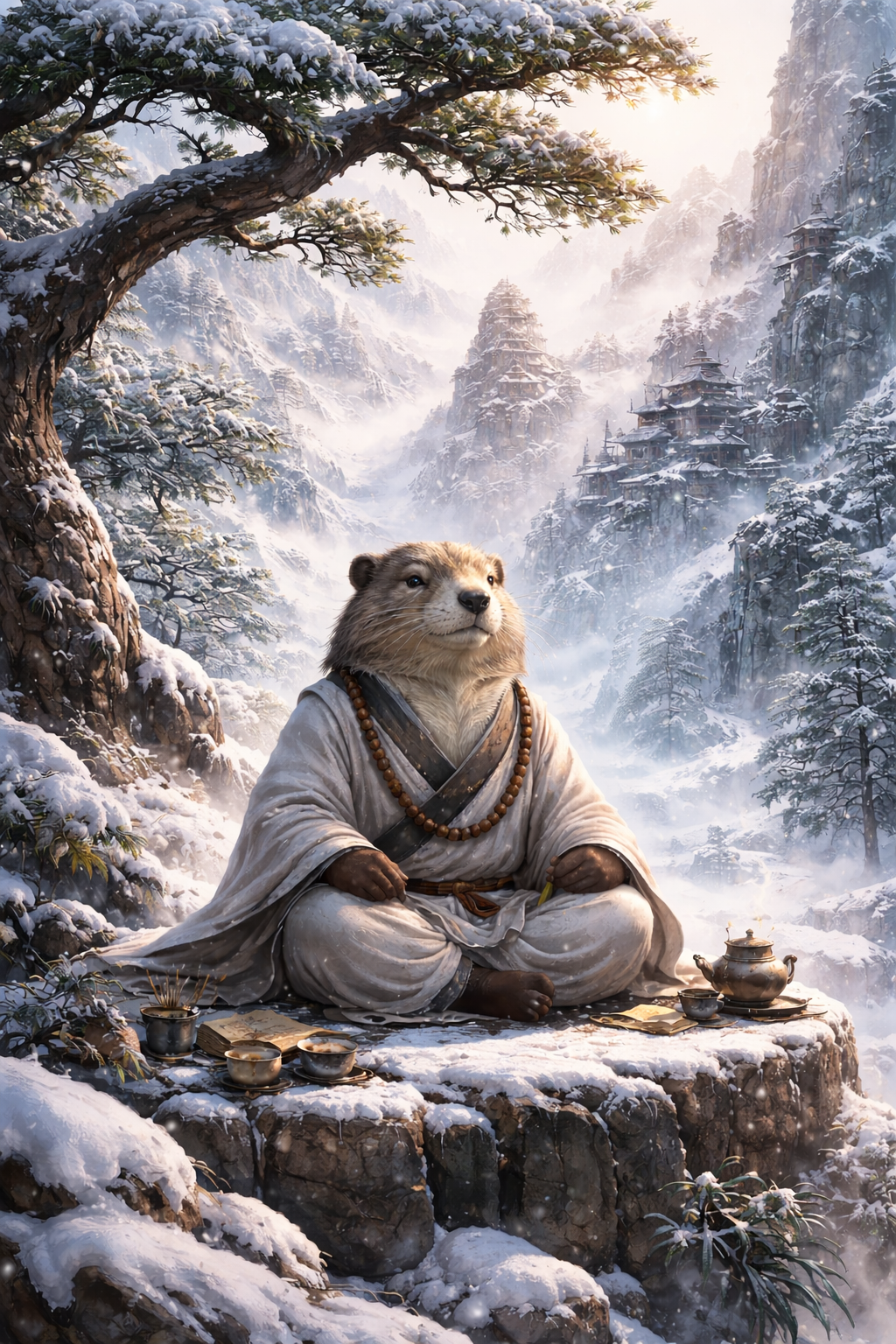 In Xinjiang, the groundhog encountered a venerable 長尾旱獺 Long-Tailed Marmot, a distant cousin shaped by altitude, wind, and age. This elder was both martial adept and medical sage, one who understood that strength and healing arise from the same root. Seeing that the groundhog’s essence was intact and his will undispersed, the marmot accepted him as a disciple.